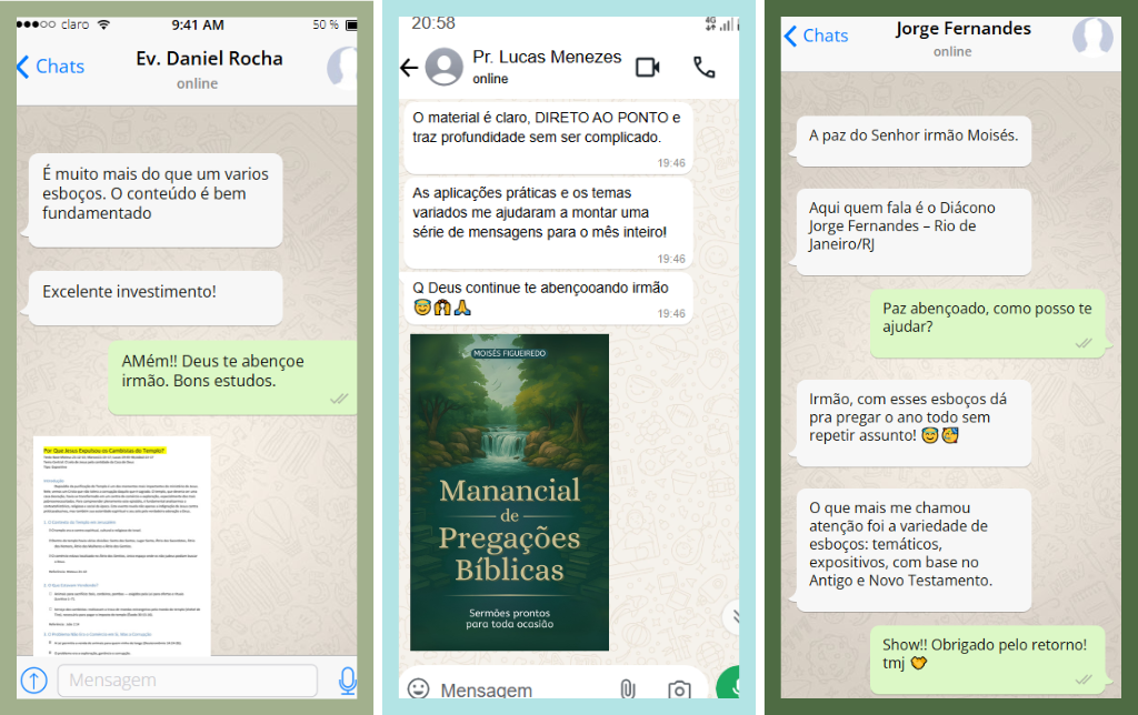 Todo o material é entregue digitalmente, pronto para você estudar, adaptar e pregar.
